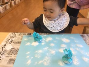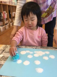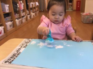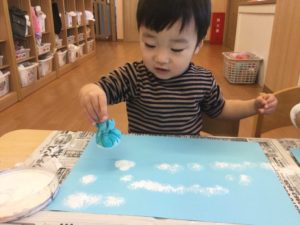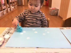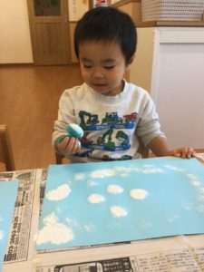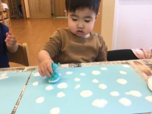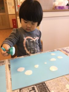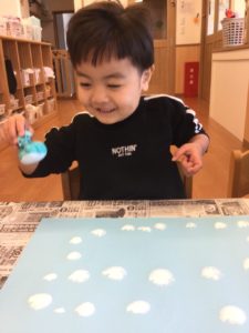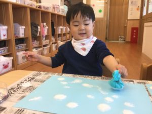 今日は絵の具で雪を降らそう❄️😆❄️