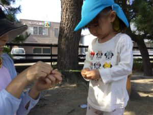 先生と松の葉で引っ張り合いっこ❣️