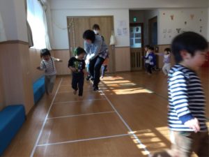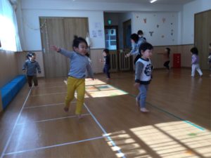 ホールでは元気いっぱい体を動かして遊んだよ😆😆😆