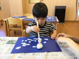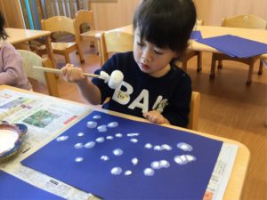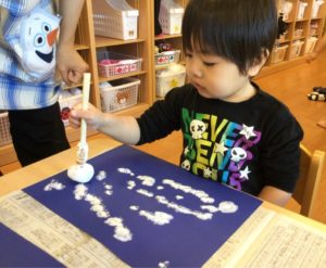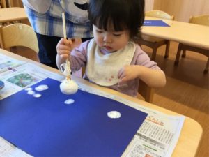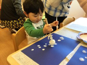 今日は絵の具を使って雪をチラチラチラ☃️