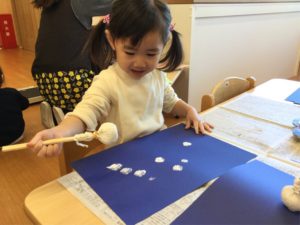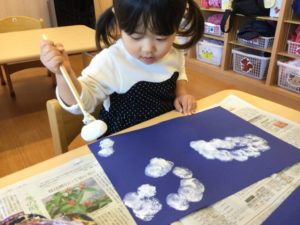 今日は絵の具を使って雪をチラチラチラ☃️