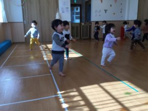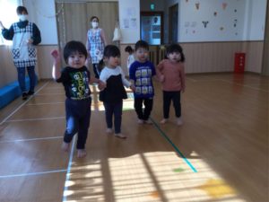 ホールでは元気いっぱい体を動かして遊んだよ😆😆😆