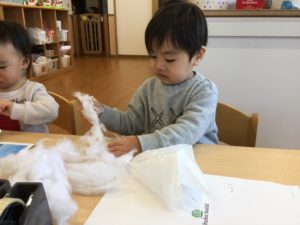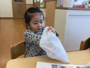 最初は綿を袋に入れよう❣️