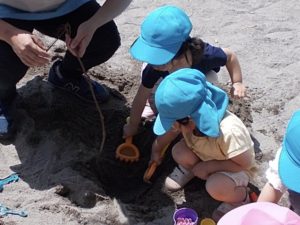 YちゃんとKちゃんはスコップで掘ってみることにしました。