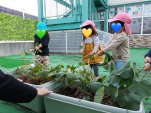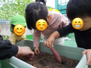 先日、園庭で育てたさつまいもをみんなで収穫しました❣️