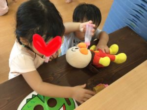 アンパンマンにミルクをあげていました❣️