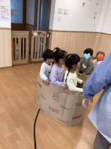 その後は、みんなで一緒に遊びました。転がしドッチや、ボールプール、
