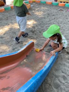 滑り台を滑らないという選択肢ではなく、どうすれば滑ることができるのかしっかり自分達で考えて行動することができていました😆👏✨