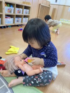 今日はお人形のメルちゃんにミルクをあげていました❤️