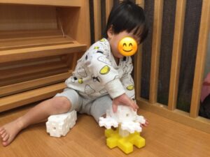 Sちゃんはたくさんのブロックをどんどん繋げて、大きい箱を作り,ママのおうち‼️