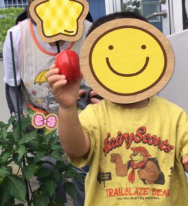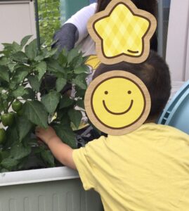 子どもたちが植えた野菜の苗が大きくなり、実がなりました。