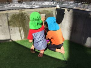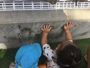 何でもない壁でも子どもたちにとっては楽しい遊び場・遊び道具になります。子どもの発想力は面白いな、と感じる毎日です。