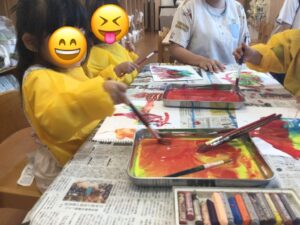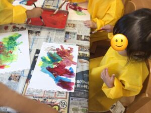 楽しんで絵の具を塗っているうちに、赤も、黄色も、、、