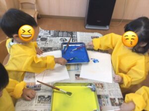 ばななグループさんではじき絵をやりました。