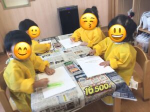 最初にクレヨンでお絵描きをしました。