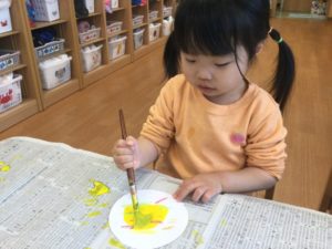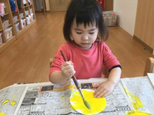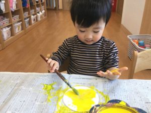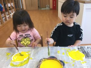 今日は絵の具を筆で塗ってみよう‼️‼️🥰