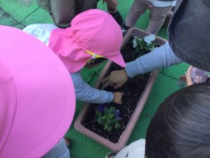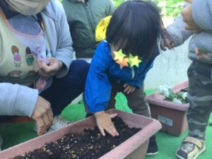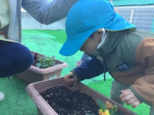 何色が咲くかな❓と聞くと「ピンクかな❓」と楽しみにしている笑顔が見られました😊