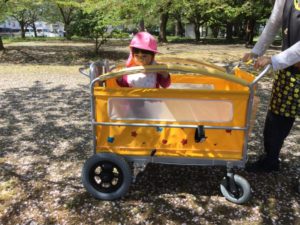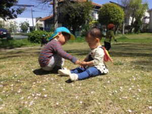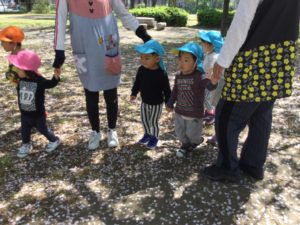 今日はおおかば公園の桜のじゅうたんの上をお散歩🎶😄🎶
