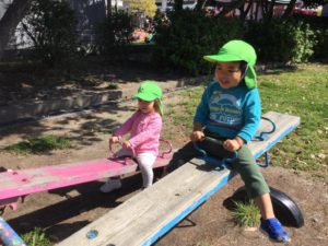 ジャングルジムからかわいいお顔がひょっこり🤗