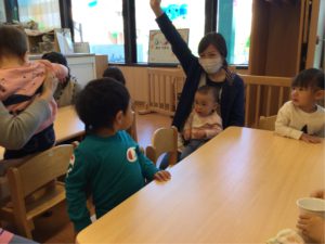 ニッコリ笑顔とおててをあげてのお返事、とっても上手だったね❣️
