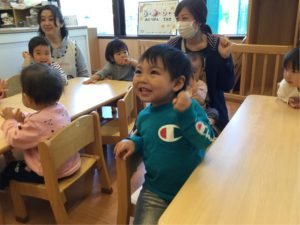 ニッコリ笑顔とおててをあげてのお返事、とっても上手だったね❣️