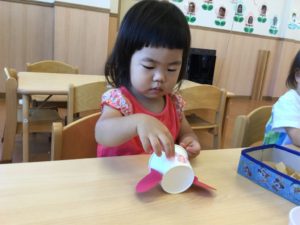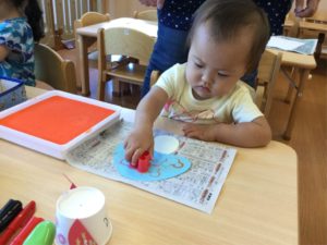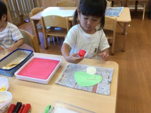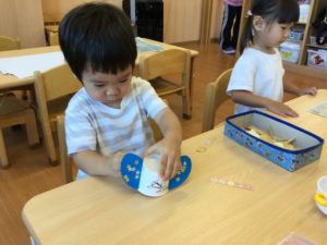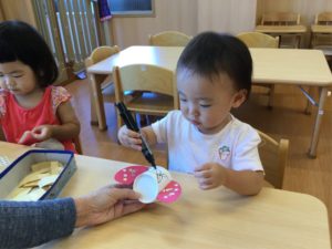 次はスズムシさんの背中にシールをペッタン❣️