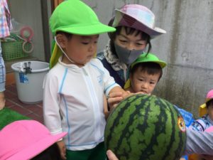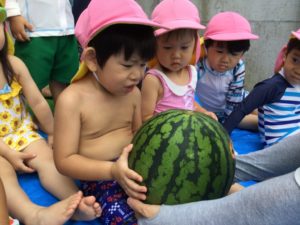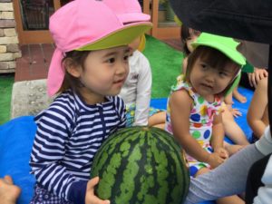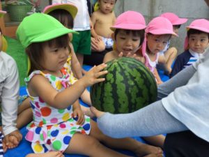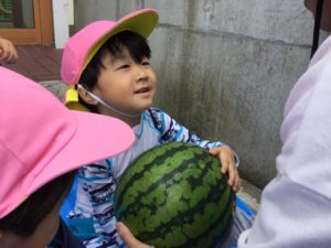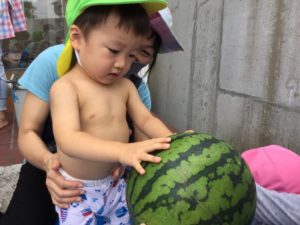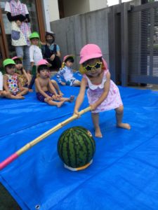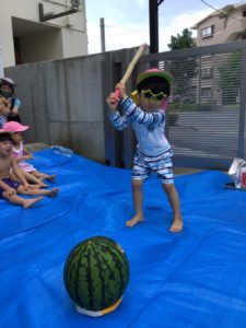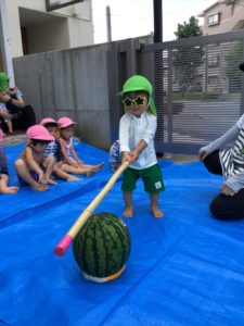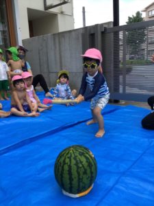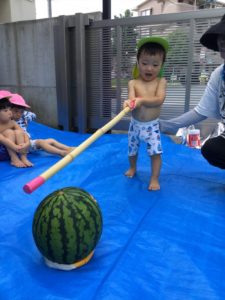 さあ、いよいよスイカをわるぞ〜🍉😄🍉