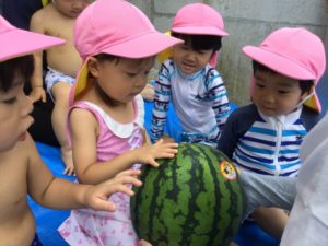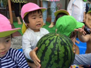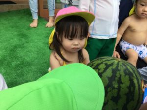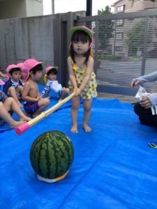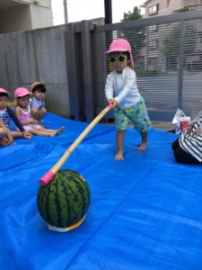 さあ、いよいよスイカをわるぞ〜🍉😄🍉