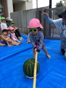 今日は楽しみにしていたスイカ割り〜〜💕💕😆💕💕