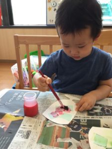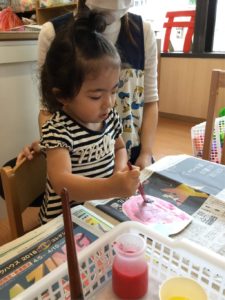 今日は昨日氷を入れたコップに、絵の具でジュースをいれよう❣️