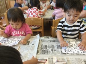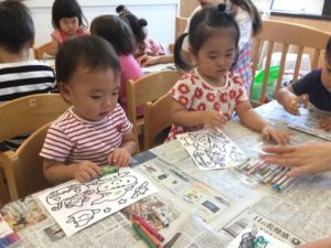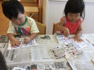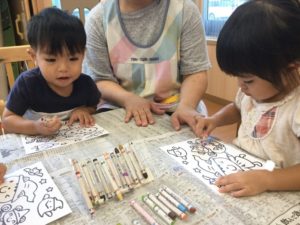 今日はクレヨンでぬりえをしよう🎶😃🎶