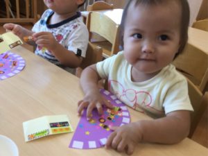 シールペッタン‼️ お帽子がだんだん素敵になっていくね😆