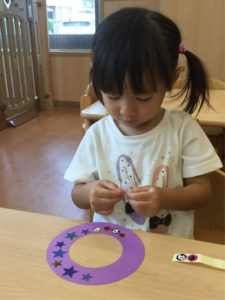 シールペッタン‼️ お帽子がだんだん素敵になっていくね😆