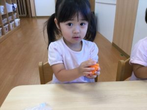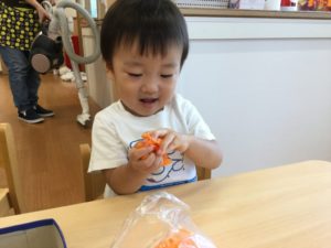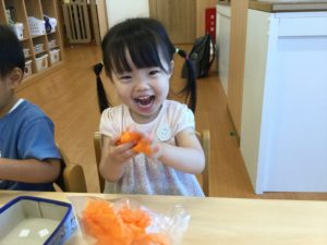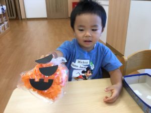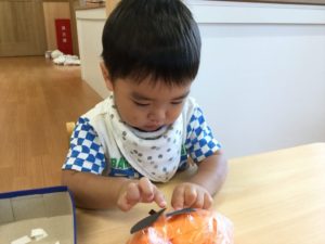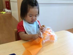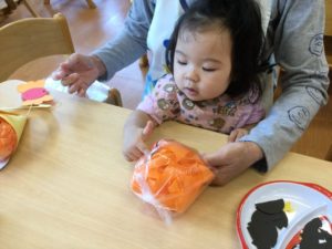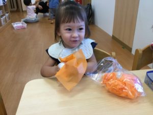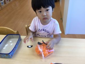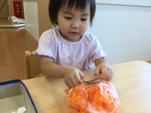 最初は袋にオレンジのお花紙を丸めて入れよう😄