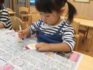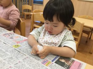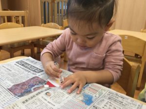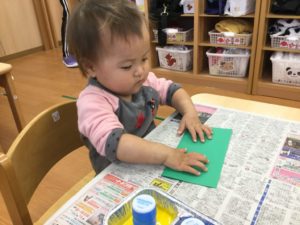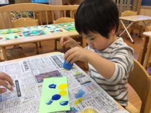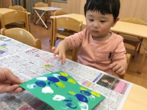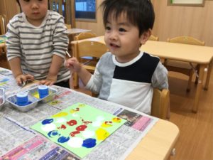 絵の具ペッタンしたら、半分に重ねてギュ〜〜‼️