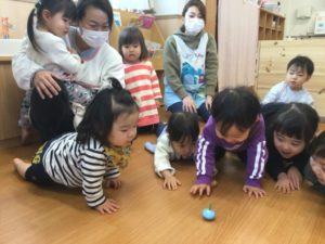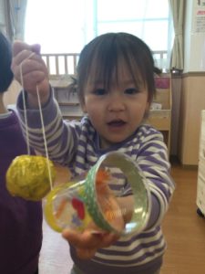 今日はお正月遊びをみんなでしよう‼️ 回すと富士山になるコマだよ😃