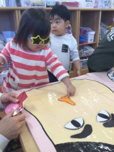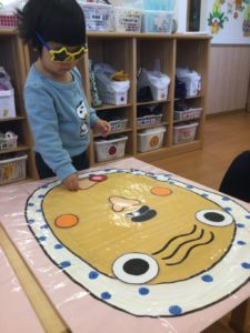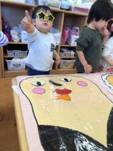 福笑いでは、サングラスの目隠しでお顔をつくろう😃