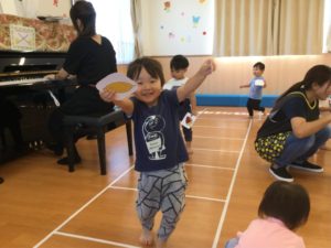 今日もみんなでリトミックスタート😄