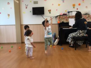 ピアノとお歌に合わせてボールをポ〜〜ン😄