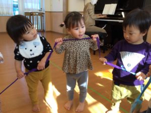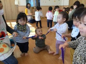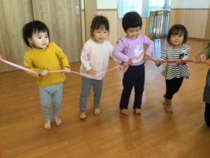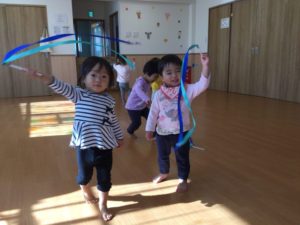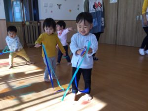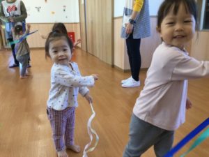 最初は『とんぼ とんぼ』のお歌にあわせてリボンをフリフリ😃
