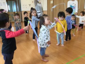 最初はリボンを持って揺らすよ〜❣️