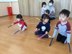 ピアノの高い音に合わせて上をトンカントンカン❣️