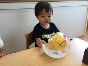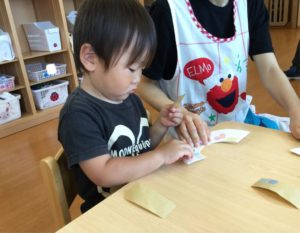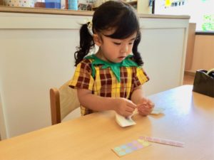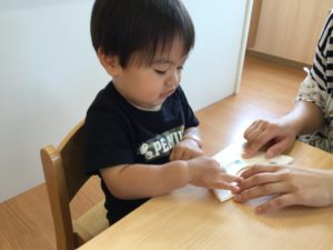 はじめにカタツムリさんのからだにシールを貼ろう😄