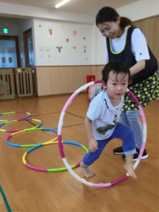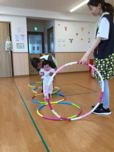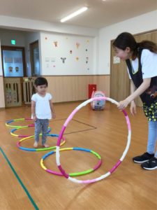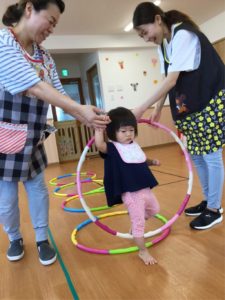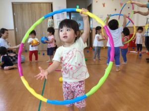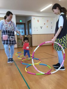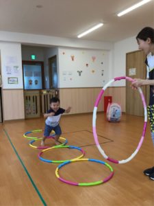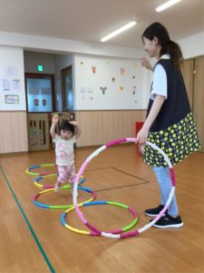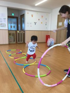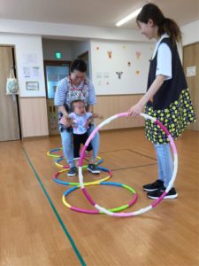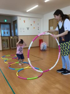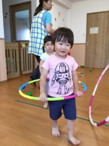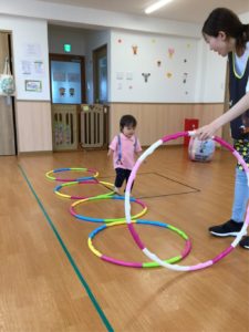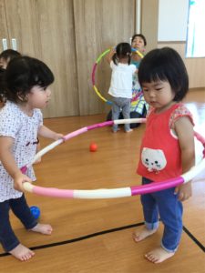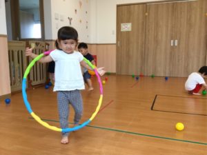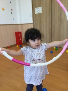 今日はホールにフープがならんでいるよ😲