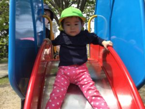 大好きなゾウさん滑り台をシュルルル〜❣️