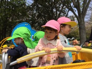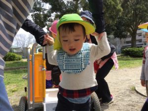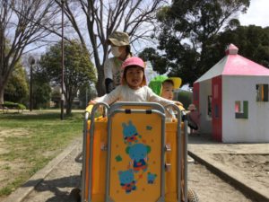 公園の中をお散歩カーに乗ってのんびりお散歩🎶😃🎶