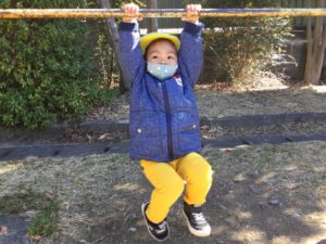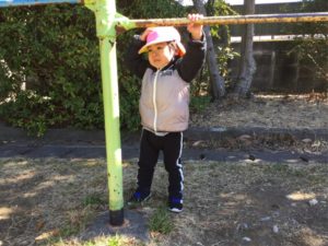 次は鉄棒で遊ぼう❣️と思ったら、鉄棒で頭をコツン😣