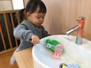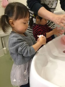 そろそろお腹がグ〜〜😋 お給食を食べる前に手を洗おう‼️