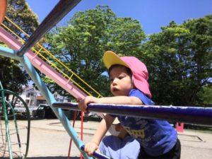 お山の鉄棒を登って『ヤッホー😄』