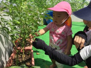 キッズ菜園では、ピーマンが実ってるよ😃